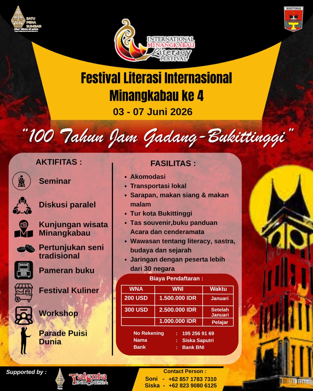 Festival Literasi Internasional Minangkabau (IMLF) ke-4 akan Diselenggarakan 3-7 Juni 2026 di Kota Bukit Tinggi, Sumatera Barat