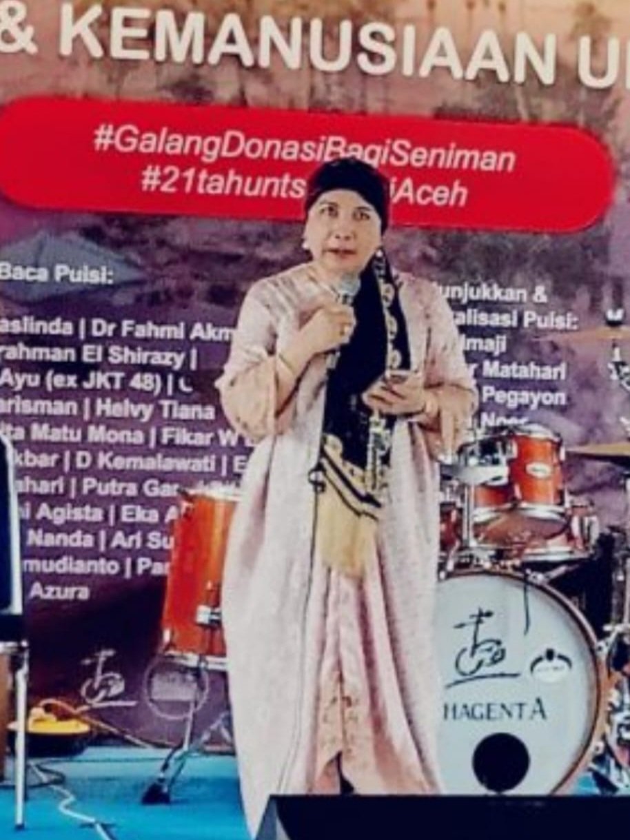 Di tengah krisis ekologis yang terjadi di Aceh, Sumatera Utara, dan Sumatera Barat, puisi yang dibacakan penyair Halimah Munawir begitu pas dan tepat, sehingga momen amal yang digelar benar-benar menyentuh suasana.