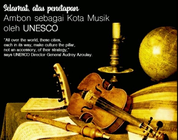 Seperti diketaui, Ambon resmi ditetapkan sebagai Kota Kreatif Berbasis Musik Dunia oleh UNESCO pada tahun 2019, bersama 65 kota lainnya di dunia.