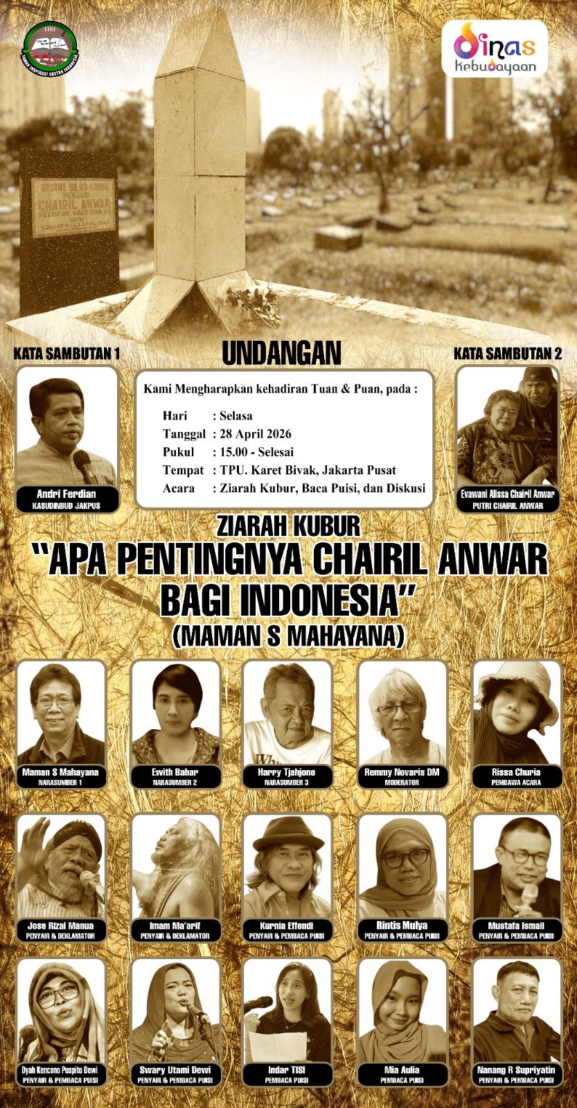Ziarah Kubur ‘Apa Pentingnya Chairil Anwar Bagi Indonesia’ Bersama TISI ke TPU Karet Bivak, Selasa, 28 April 2026